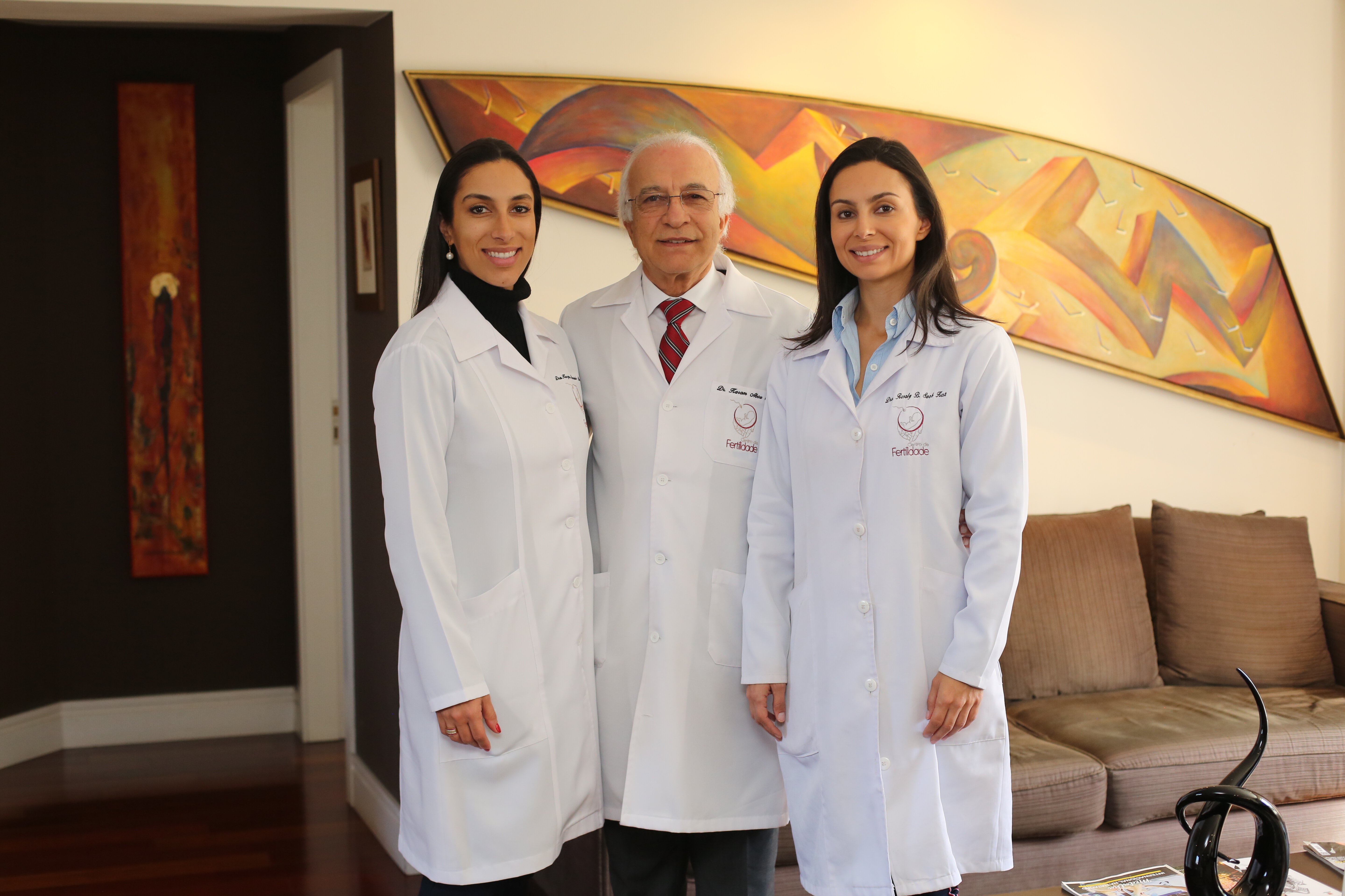Dr. Karam Abou Saad com as filhas Karyna e Rosaly Bustelo Saab, também médicas, no Centro de Fertilidade Fotos: Conceito Ideal/No Sofá