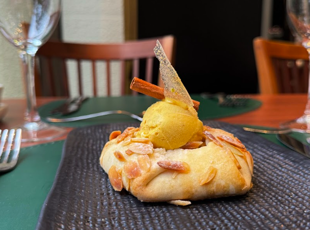Para encerrar, duas sobremesas que são puro afeto: a Torta di Mele (acima), clássica torta de maçã servida com sorvete de canela, desperta memórias de cozinha caseira; enquanto o Sorbetto Rossi, de frutas vermelhas e manjericão, refresca e encanta com sua doçura natural.