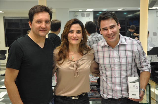 O hair stylist do Stylo Hair Institute, Marcos Lima, a dermatologista, Dra Maria Frantzezos Kotzias, e o gerente da Theraskin, Álvaro Vazques