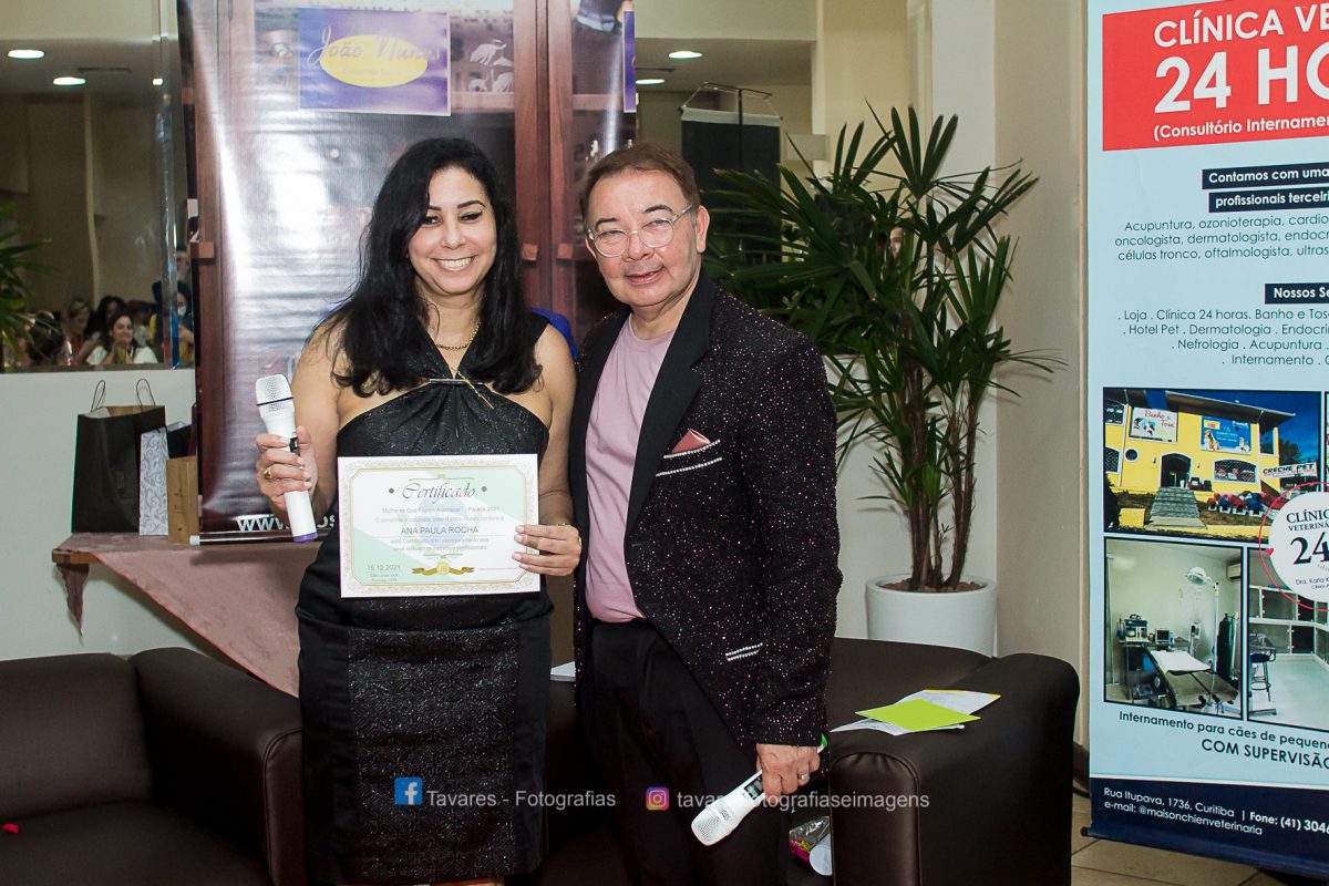 A empresária Ana Paula Rocha- CEO da Gama Química do Brasil e CEO da Crhoma Metais Não Ferrosos, recebeu na final de 2021, das mãos do idealizador do evento “Mulheres Empreendedoras Que Fazem Acontecer-2021”, e editor chefe deste site- João Nunes, destacada homenagem