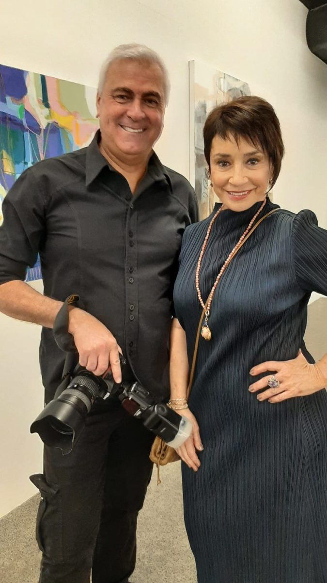 Gerson Lima profissional da fotografia em conversa com Zilda Fraletti, galerista que representa a artista Ana Serafin, no Paraná e Santa Catarina. Fotografia: Alice Varajão @alicevarajao
