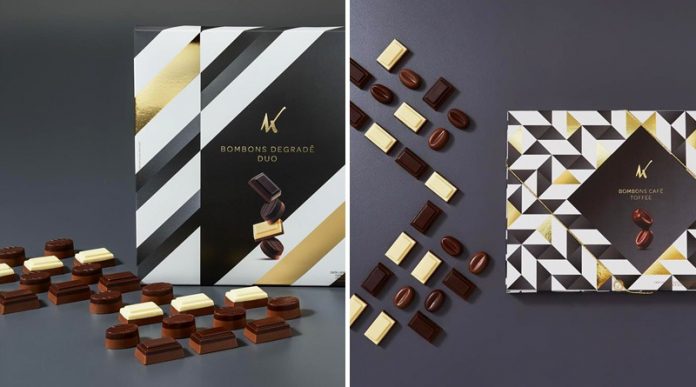 A caixa é composta por 16 bombons com base de chocolate ao leite, mas o topo ganha uma camada diferenciada, proporcionando um tipo de intensidade a cada mordida. Os sabores são chocolate branco, 60%, 70% e 80%, divididos em 4 unidades de cada. Preço: R$ 75,90
