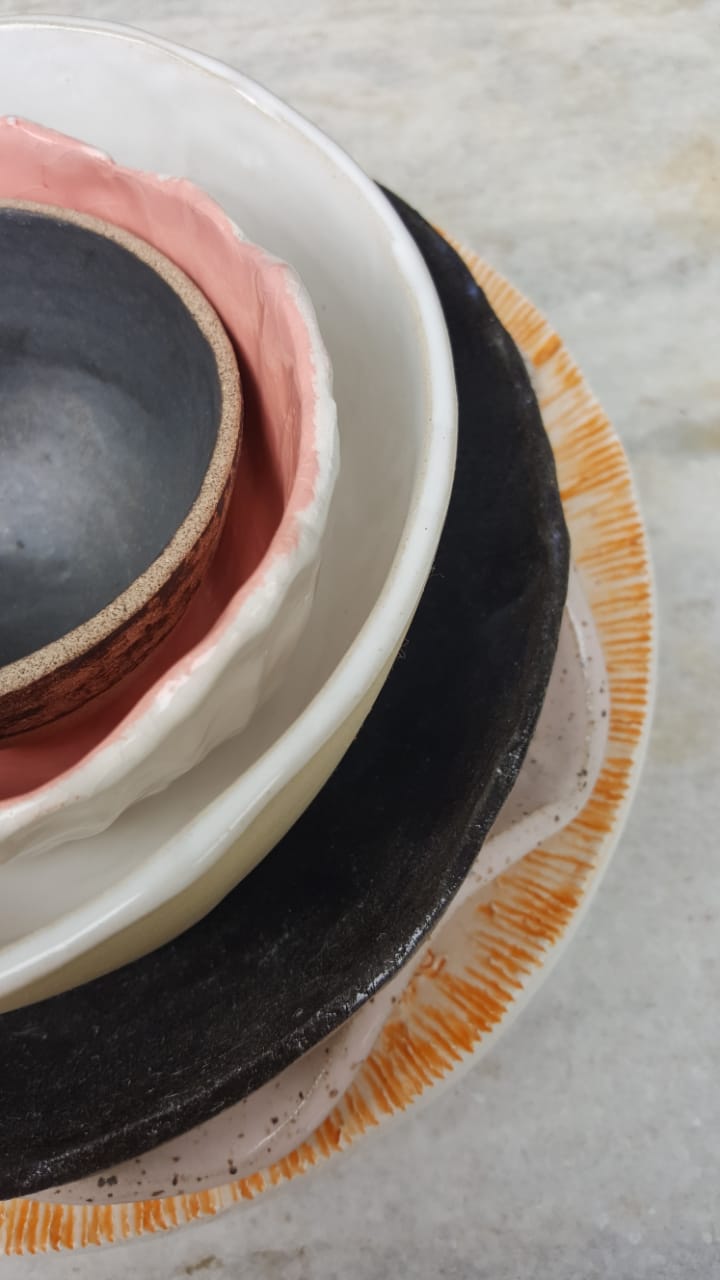São pratos, travessas, xícaras, canecas, bolws de tamanhos e formatos variados, texturas, acabamentos e cores únicos. Não há outra igual. Assim como as pessoas.