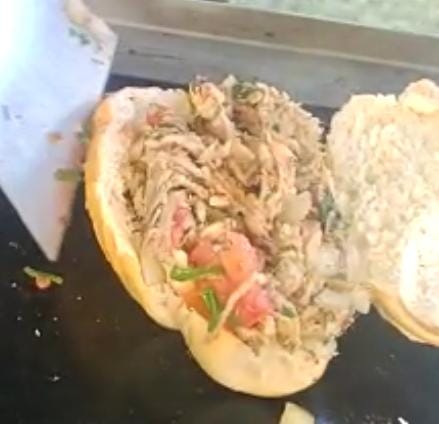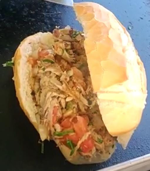 O pernil é marinado por 24h depois assado por 4h e desfiado, o preparo final é feito na chapa, o de o pernil e enriquecido com o adocicado da cebola, a acidez do tomate e o frescor do cheiro verde, o pão francês escolhido a dedo pelo Chef é tostado depois preenchido com o pernil já quentinho e suculento, nesse momento a feira toda já está tomada pelos aromas desse preparo, para acompanhar o sanduíche, os chefa disponibilizam um molho de pimenta saboroso ao gosto do cliente.