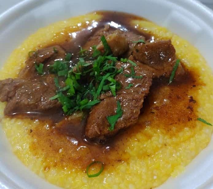 Na mesma linha de comida afetiva tem o potinho de Quirerinha ou Canjiquinha que pode ser com pernil ou sem e Também atende ao público vegano e celíaco por ser um preparo de milho.