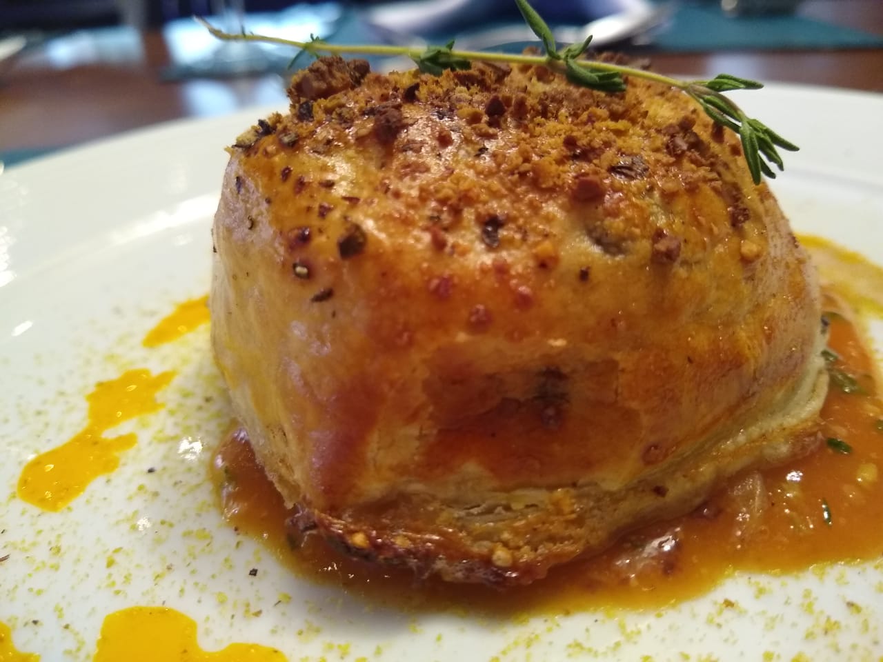 Due Amori -Bacalhau ao bisque de camarão, mousseline de aipim e almofada de maçã com brie.