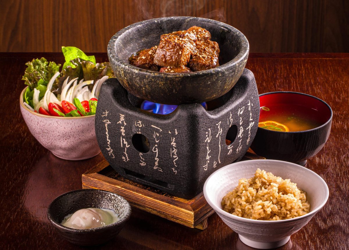 Uma das opções é o teishoku Mignon Niniku Gohan – um prato que traz cubos de mignon Angus grelhados, finalizados com molho de alho (Niniku) e servidos em rechaud, preservando aroma e sabor. Antes da proteína, os clientes são recebidos com uma salada executiva, leve e refrescante.