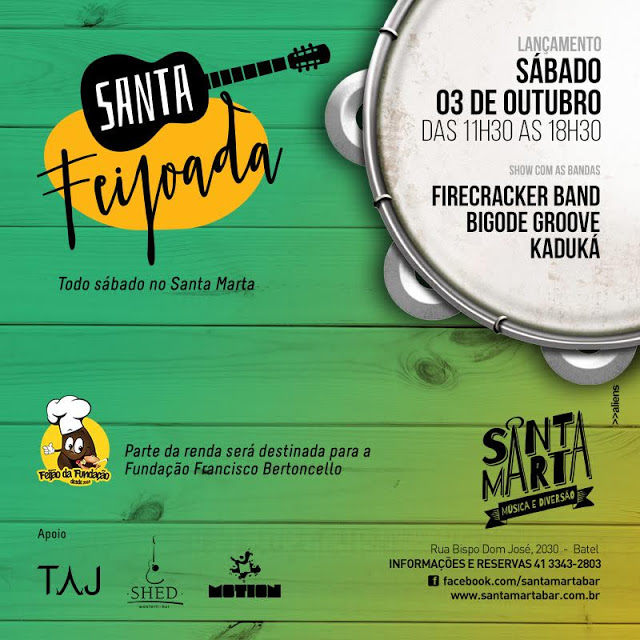 Nesse sábado, dia 3 de outubro, a partir das 11h30, o Santa Marta Bar dá início ao novo modelo de feijoada da casa, que agora terá parte da renda destinada à Fundação Francisco Bertoncello, mantendo a arrecadação constante.