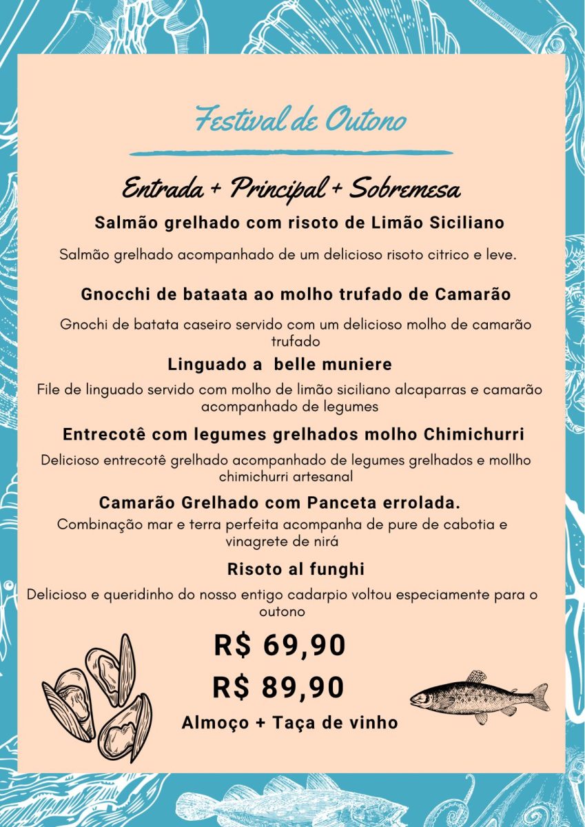 Vai até o dia 22 de junho o Festival de Outono do Lupe Cozinha do Mar & Café, onde é possível provar uma sequência de pratos deliciosos, servidos no almoço e jantar, por apenas R$ 69,90