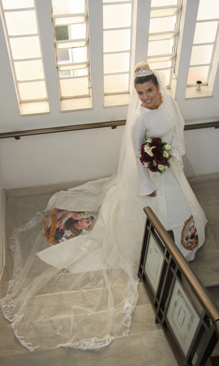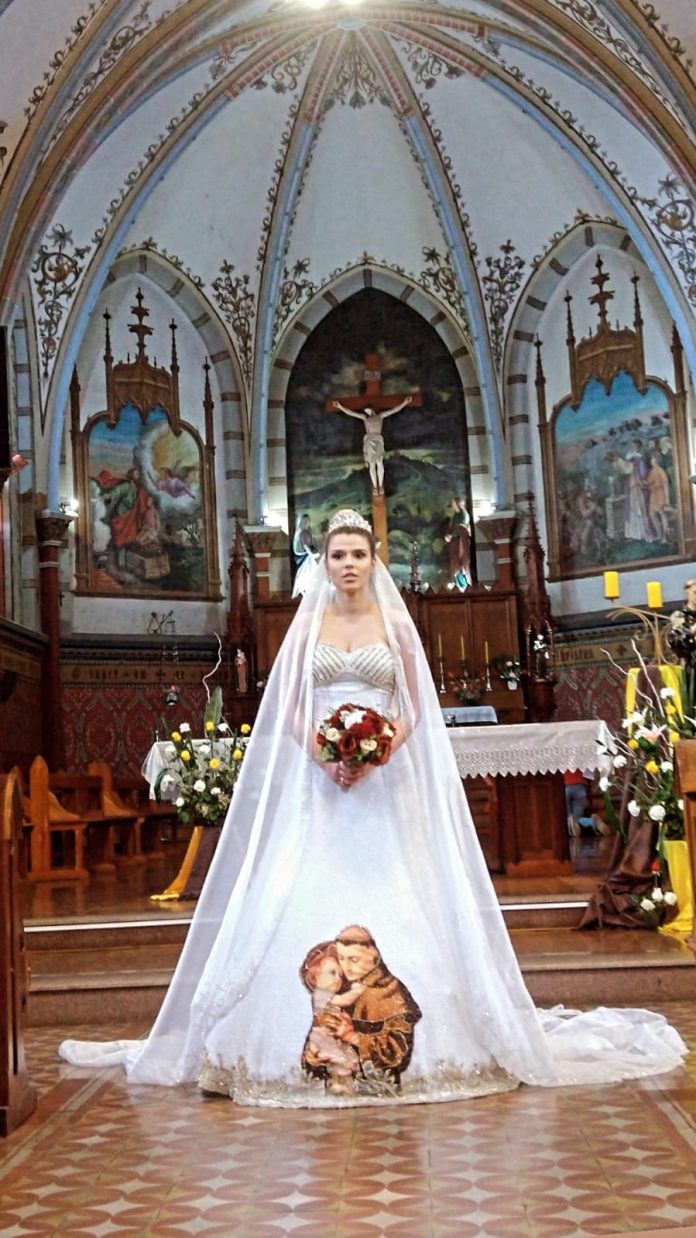 A jovem, que idealizava seu sonho de menina com o vestido branco de noiva, vai vestir pela primeira vez vestidos de noiva. Os vestidos, produzidos pelo renomado estilista Edson Eddel, terão imagens do Santo Antônio com muito brilho, enaltecendo a Sua Santidade.