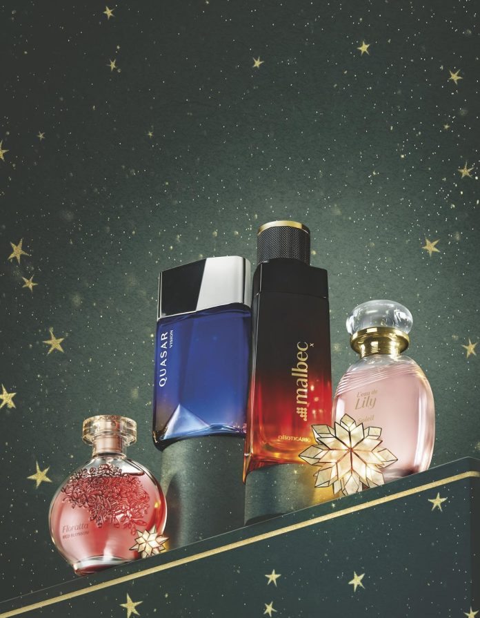 Em perfumaria feminina, o Kit Presente Natal L´eau de Lily apresenta uma composição incrível com L’eau de Lily em uma embalagem encantadora. O kit completo conta com o já clássico  L’eau de Lily Desodorante Colônia, com toda a sofisticação do lírio em fragrância especial e outros dois itens que prometem potencializar o aroma floral e hidratar intensamente a pele. O Creme Acetinado Hidratante Desodorante Corporal Lily, composto por manteiga de karitê e vitamina E, entrega pele aveludada por até 48 horas. Já o Creme Desodorante Hidratante para Mãos Lily oferece um cuidado especial e supernutritivo para as mãos, sem deixar a pele oleosa e danificar ou retirar o brilho do esmalte. Como uma opção envolvente, o Kit Presente Natal Floratta Red combina a delicadeza da flor da maçã e a doçura do fruto em soluções perfumadas. Floratta Red Desodorante Colônia traz um aroma floriental frutal marcante que combina com quem tem muita atitude, enquanto a Loção Hidratante Desodorante Corporal Floratta Red, em edição limitada, é ideal para quem não abre mão da fragrância na hora de cuidar da pele – atua como um potencializador do aroma, além de promover hidratação e toque aveludado por até 48 horas.