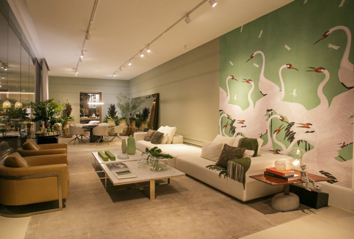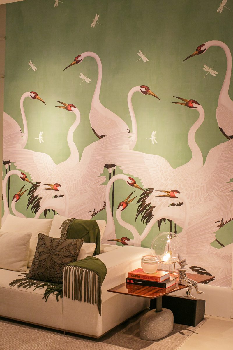 A vitrine assinada por ela carrega uma série de elementos refinados, a começar pelo mobiliário da Artefacto. “Os móveis da Artefacto tem elegância e imponência. Minha ideia foi propor um espaço onde eles pudessem brilhar”, conta Ivana. O ponto de partida do projeto foi o papel de parede Gucci, trazido exclusivamente para compor a decoração. O fundo verde inspirou Ivana a ampliar o uso da cor em vegetação, aplicada em grandes vasos Organne. “Verde evoca frescor, saúde e tranquilidade. É a cor da motivação, da criatividade e da imaginação A natureza é sempre atemporal e, para mim, um símbolo de renovação e prosperidade”, conta a arquiteta.