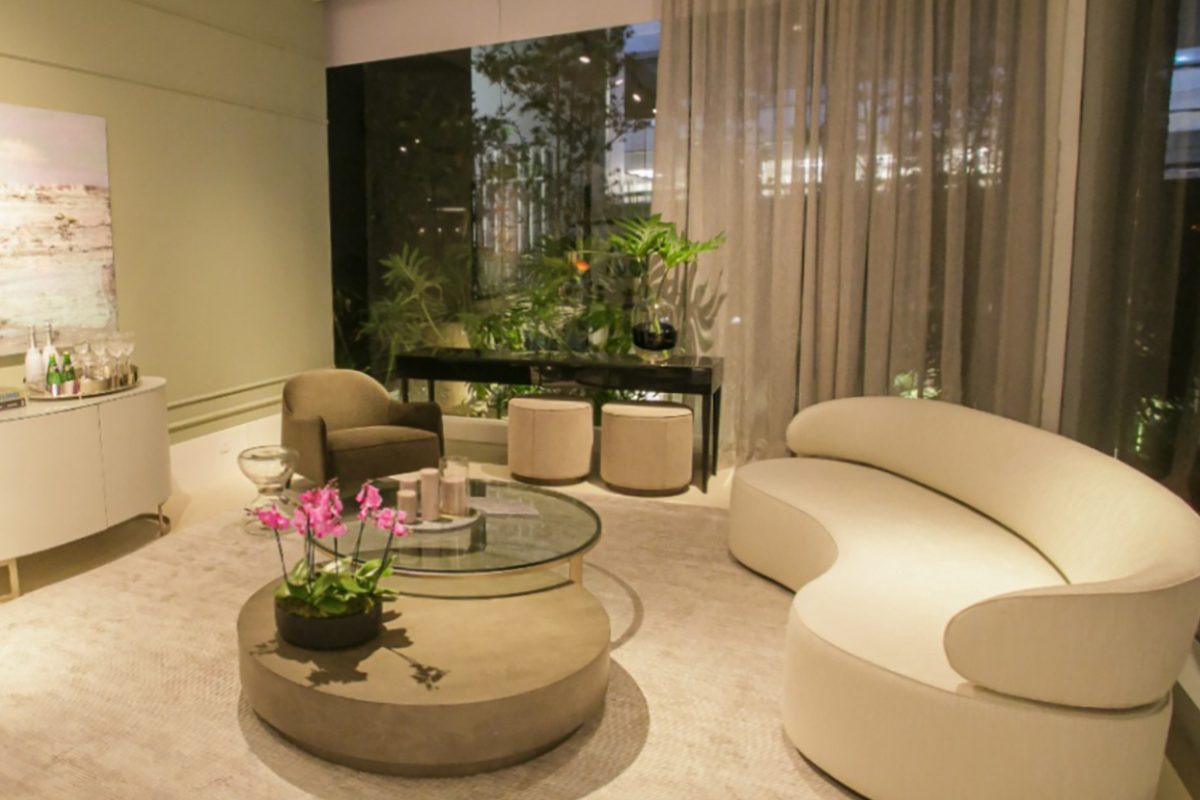 O espaço tem 95m2 e é dividido em três áreas: estar, convívio e jantar. A proposta é usar uma das salas para receber convidados, ou até relaxar após um dia de trabalho, Destaque para o buffet Constantin, com formas arredondadas e para o sofá Carrie, com contornos mais alongados capazes de acomodar mais pessoas com conforto e ergonomia – o encosto, em formato de concha que “abraça”, também estende-se de ponta a ponta, contribuindo para o shape contemporâneo e minimalista.