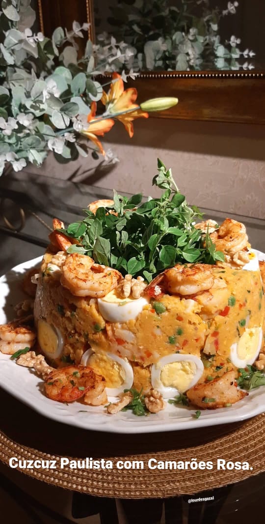 Cuzcuz Paulista com Camarões Rosa. R$139.00 – R$10.00 (Taxa de Entrega Curitiba)