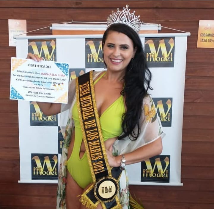 A apresentadora e Modelo Raphaela Lima – eleita “Reina Mundial de Los Mares 2021” pela W Model é outra presença marcante na noite de hoje no “Prêmio Podium-2022”