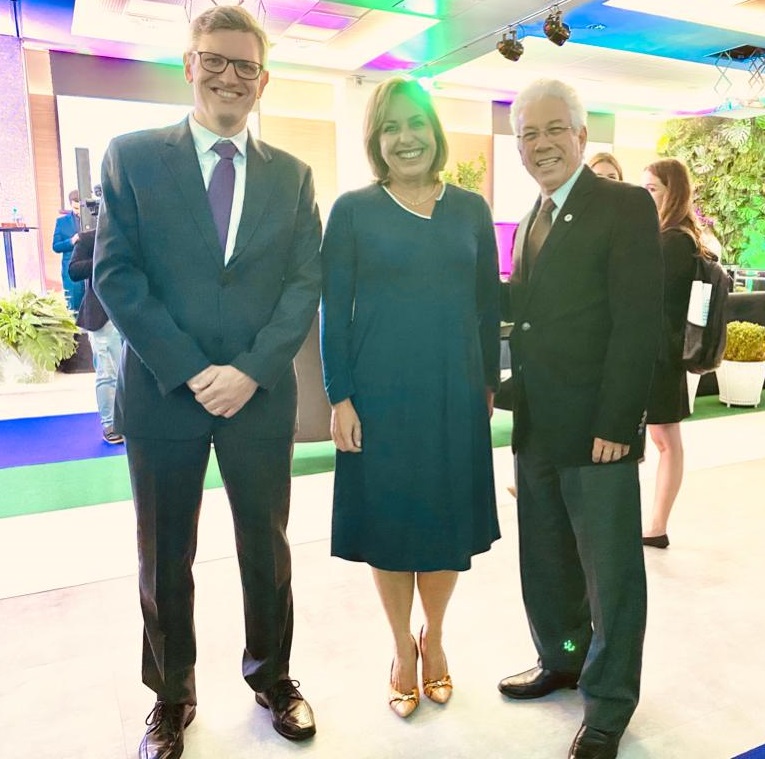 O diretor de Mercado e Comunicação da Unimed-PR, Alexandre Bley; a presidente da Ahopar, Marcia Rangel de Abreu, e o presidente da Associação Médica do Paraná, Nerlan de Carvalho. Foto: Divulgação/No Sofá