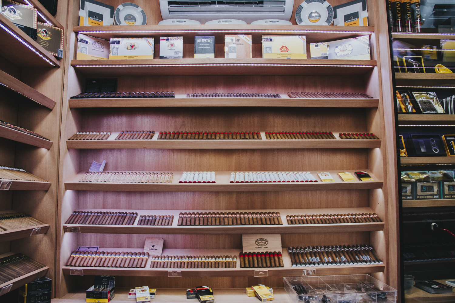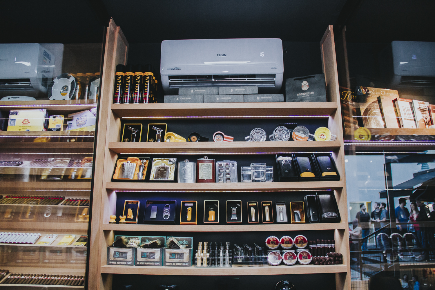 Além da ampla variedade de charutos, entre os itens disponíveis na loja estão acessórios como cortadores, furadores, umidores, maçaricos, porta-charutos, cantis, cinzeiros e copos, de vários estilos e marcas, em valores que vão de R$ 10 a R$ 350.