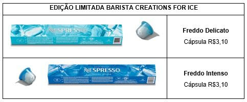 Especificamente criados para entregar todo o sabor dos cafés Nespresso quando misturados com gelo, a linha de Edição Limitada Barista Creations For Ice oferece não apenas uma bebida deliciosa, mas também uma experiência única para os amantes de café. A Edição Limitada chegou ao mercado no dia 18 de janeiro e deve ficar nas lojas pelos próximos dois meses, ou enquanto durarem os estoques.
