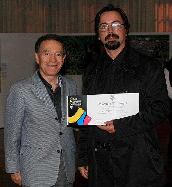 Um dos quatro artistas premiados, Ari Vicentini Silveira e o Presidente do Country Club, João Carlos Ribeiro