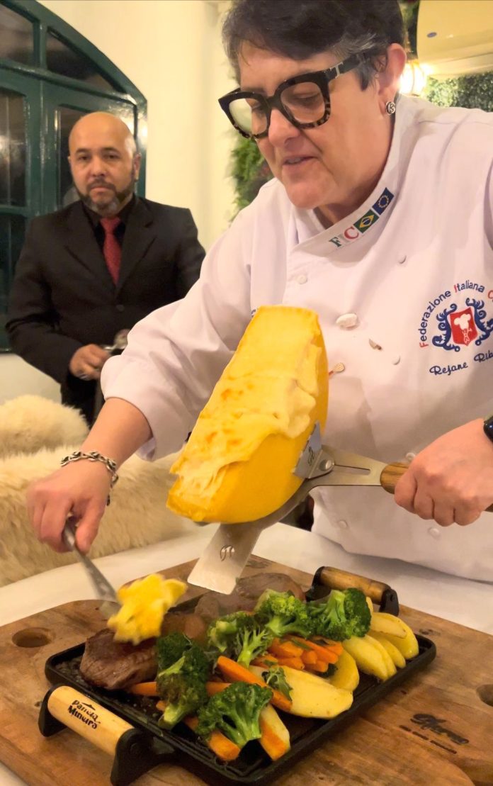 A renomada chef Rejane Ribeiro vai preparar uma saborosa e suculenta Picanha com legumes com um acompanhamento daqueles de impressionar – e postar nas redes sociais: o delicioso queijo raclete derretido.