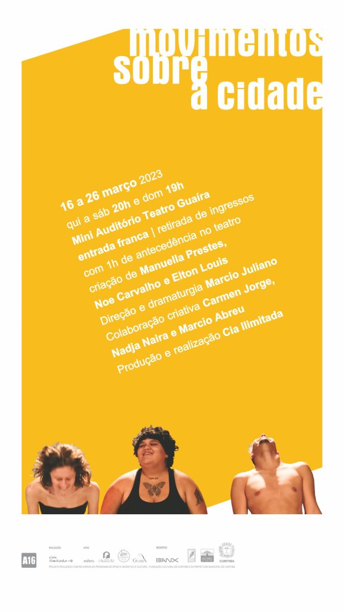 Como corpos plurais percebem e se movimentam pela cidade? Eles a definem? Cia Ilimitada estreia novo trabalho no Miniauditório do Teatro Guaíra, amanhã, 16 de março. Entrada Gratuita