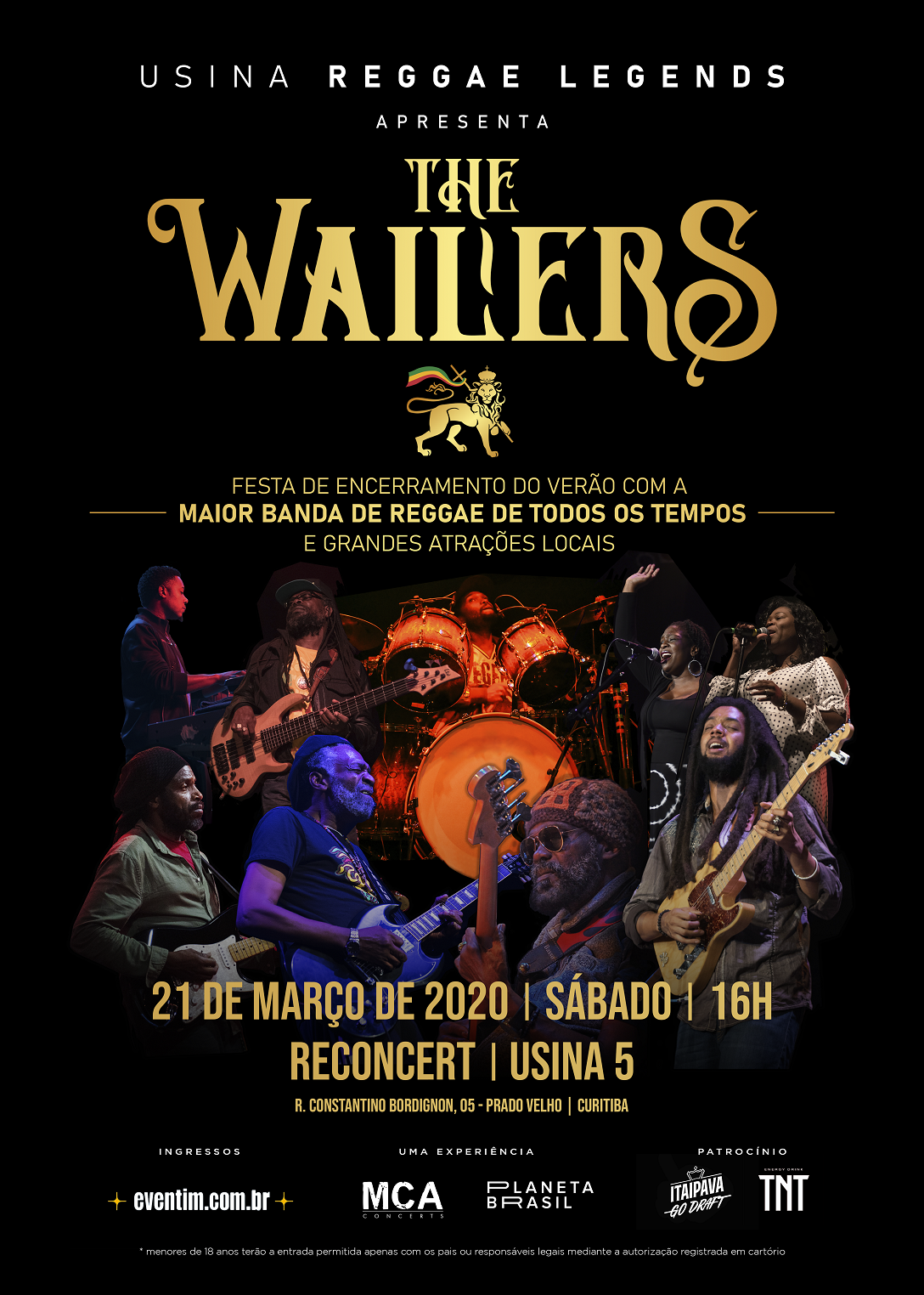 A primeira edição do Usina Reggae Legends, com show da banda The Wailers, será realizada no dia 21 de março, na ReConcert – Usina 5 (Rua Constantino Bordignon, 05 – Prado Velho), com portões abertos a partir das 16h.