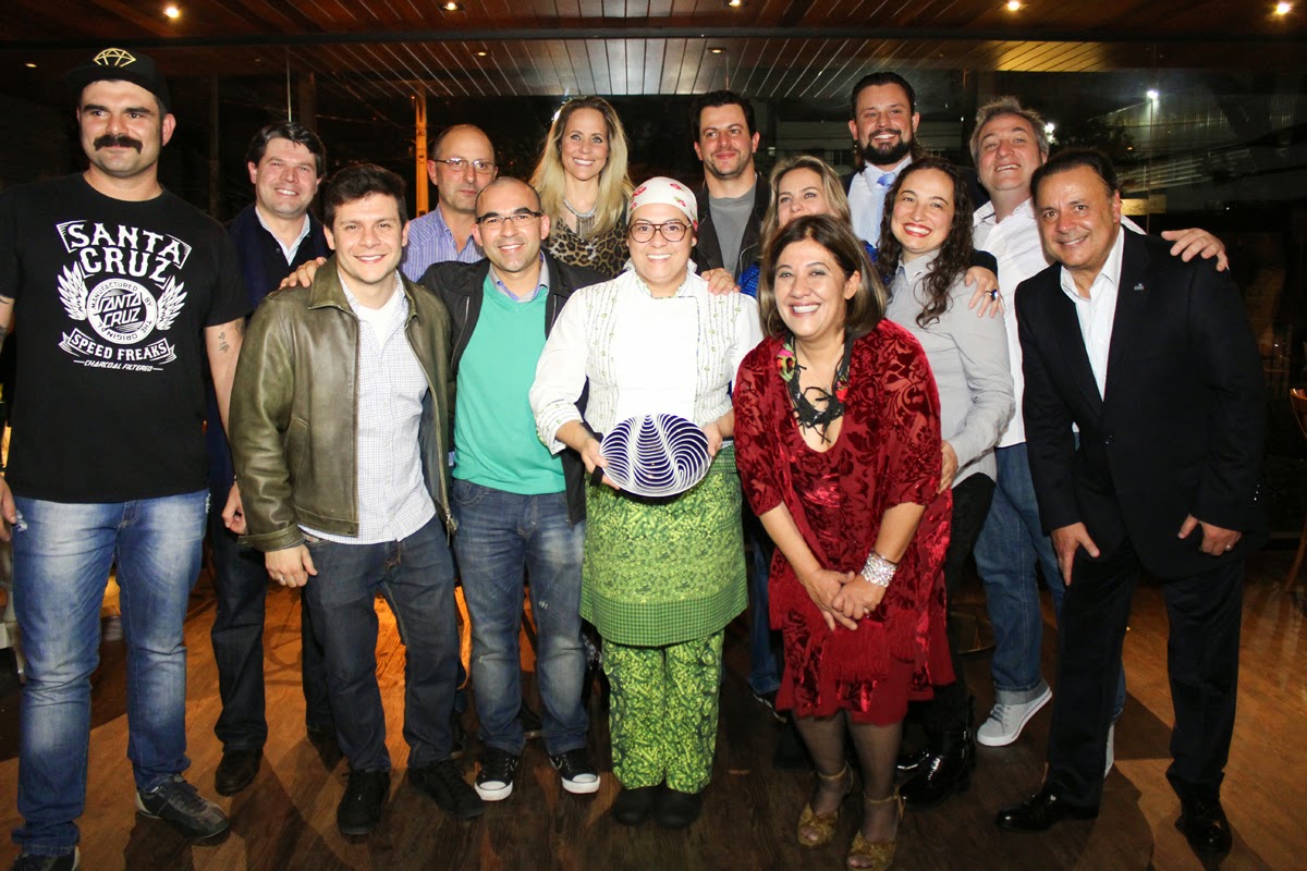 Os chefs que estamparam a capa da revista junto com Cintia Peixoto (de vermelho), Lilian Gassen (atrás, de cinza) e Leonardo Petrelli (à direita) se reuniram em bistrô da cidade para confraternizar. Vale o registro pela educação e respeito de sempre do Grupo RIC PARANÁ com este jornalista.