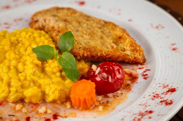 No almoço, o cardápio segue uma linha que valoriza ingredientes nacionais sem abrir mão da técnica. O Risoto de Palmito com iogurte e açafrão-da-terra é um abraço de cremosidade com perfume dourado. Já o Frango Crocante (foto) chega em versão reconfortante, acompanhado de risoto de açafrão e queijos ou do expressivo arroz espanhol, que traz nuances mediterrâneas ao prato.