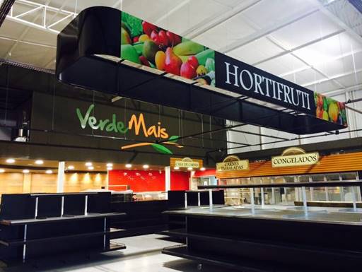 A arquitetura investe em tons amadeirados, paredes vivas, gôndolas mais baixas oferecendo visão de toda a loja que lembram o visual do tradicional Mercado Municipal de Curitiba.